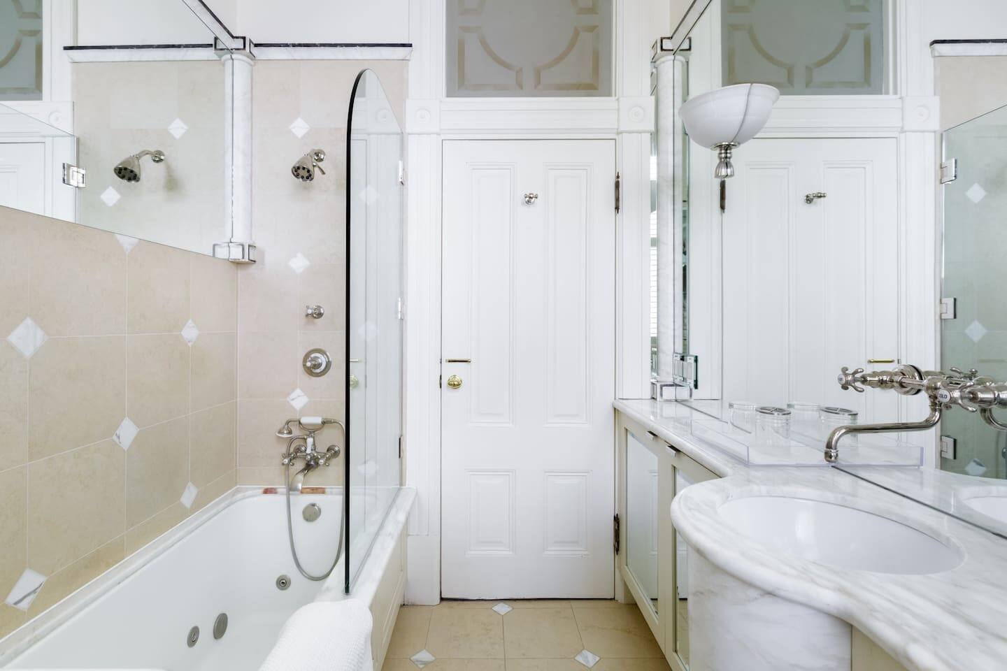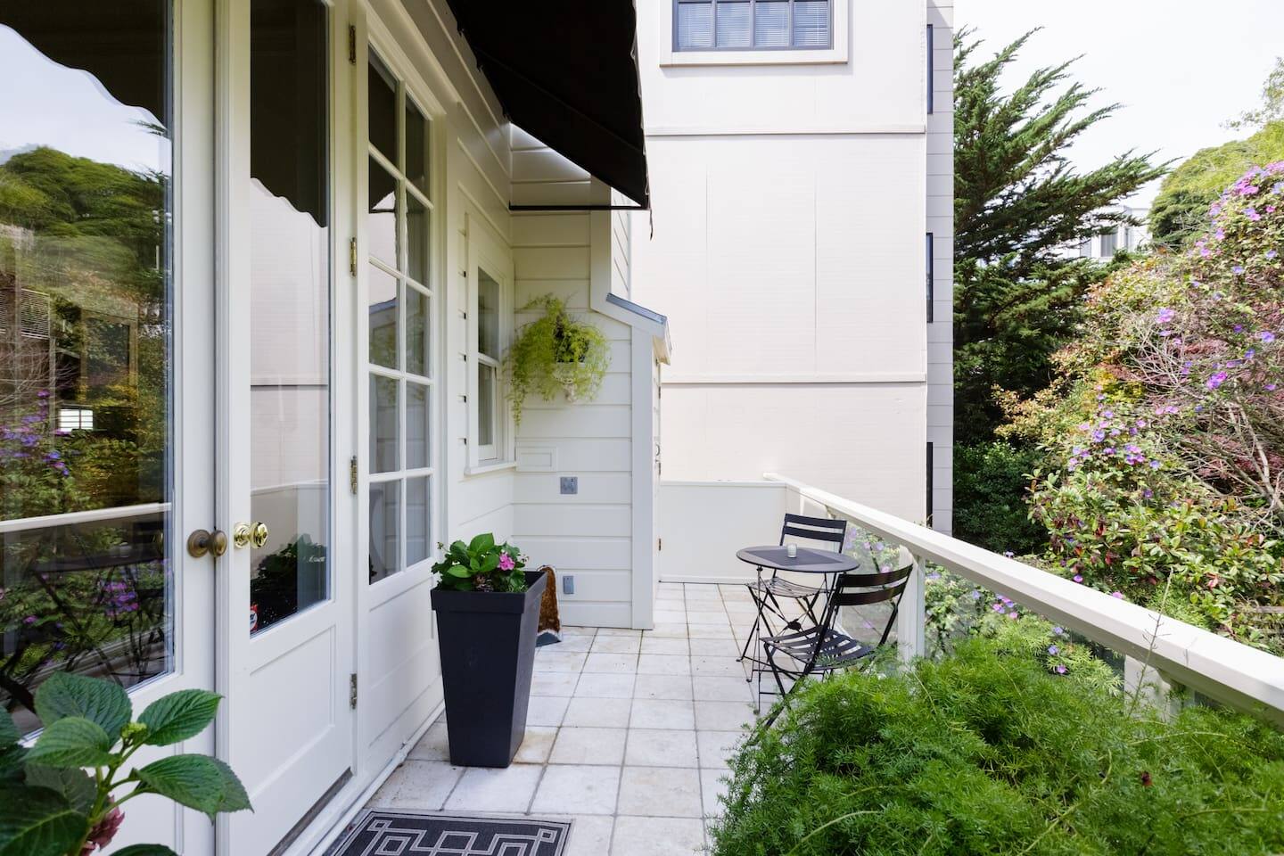 Located at the rear of the building and on the top floor of my home enjoy a full one bedroom apartment all to yourself! Enjoy the view of greenery from the dining room balcony. Hummingbirds and red-cheeked parrots squawk as they fly overhead to the Presidio. Gas fireplace in the living room for the chilly months. The bathroom has a jet tub and towel heater. The bedroom has plenty of television, Xfinity channels, Wi-Fi, closet space, and a comfortable queen bed. The pleasant European kitchen has a gas stove, Miele dishwasher, and Subzero refrigerator. It's an enjoyable space!