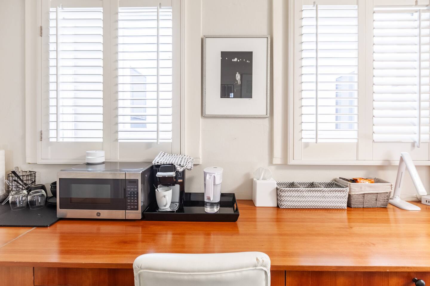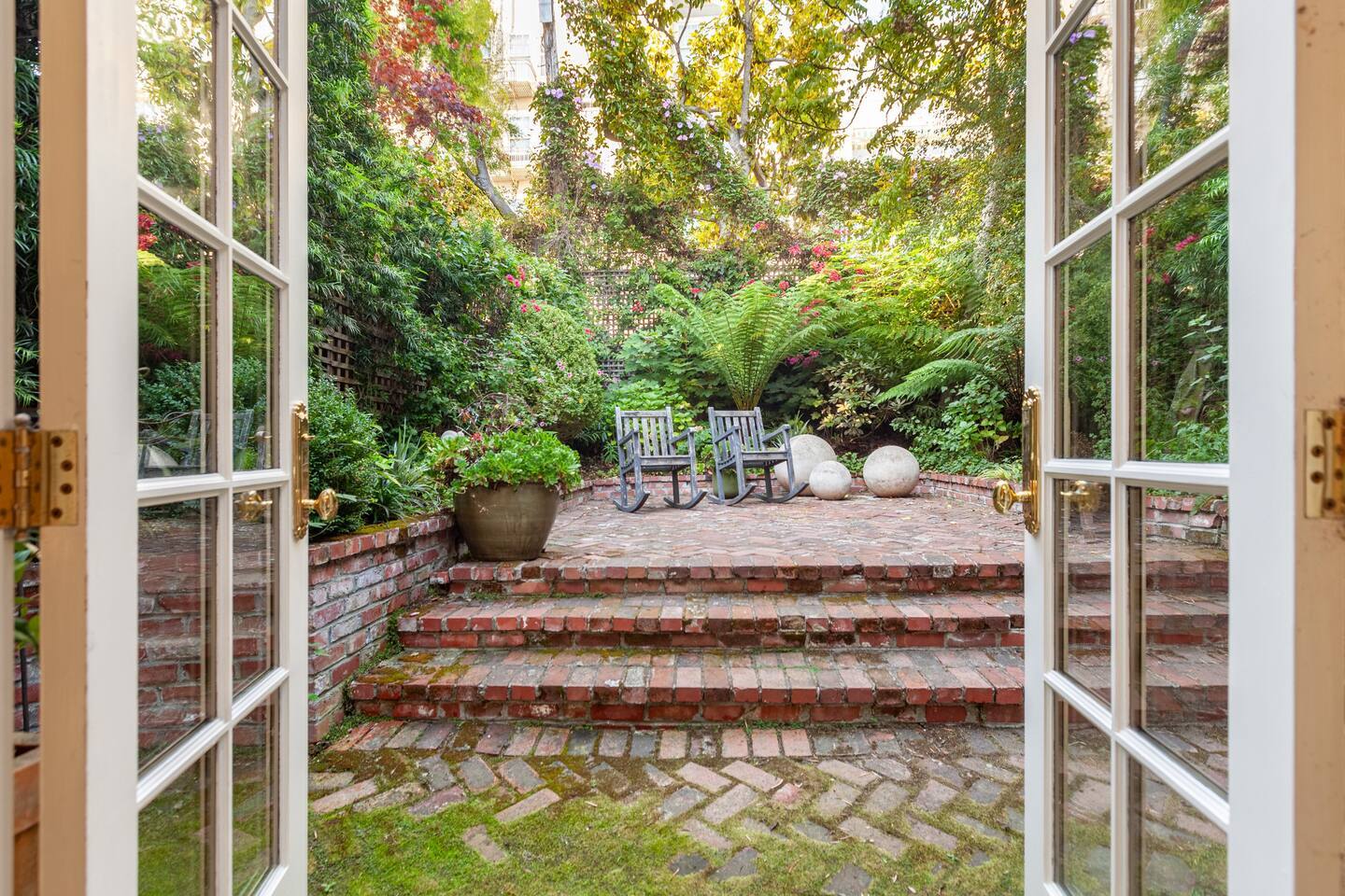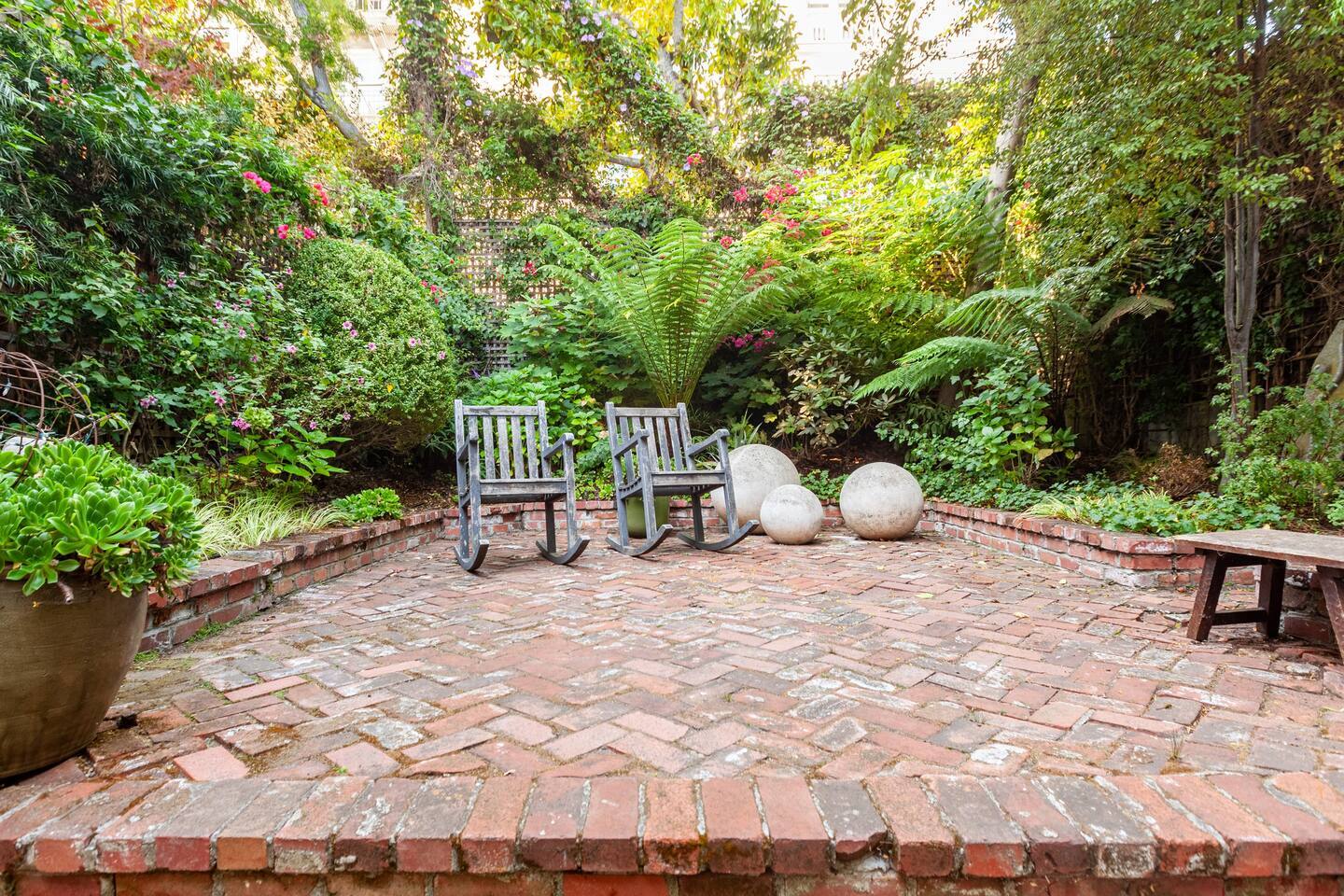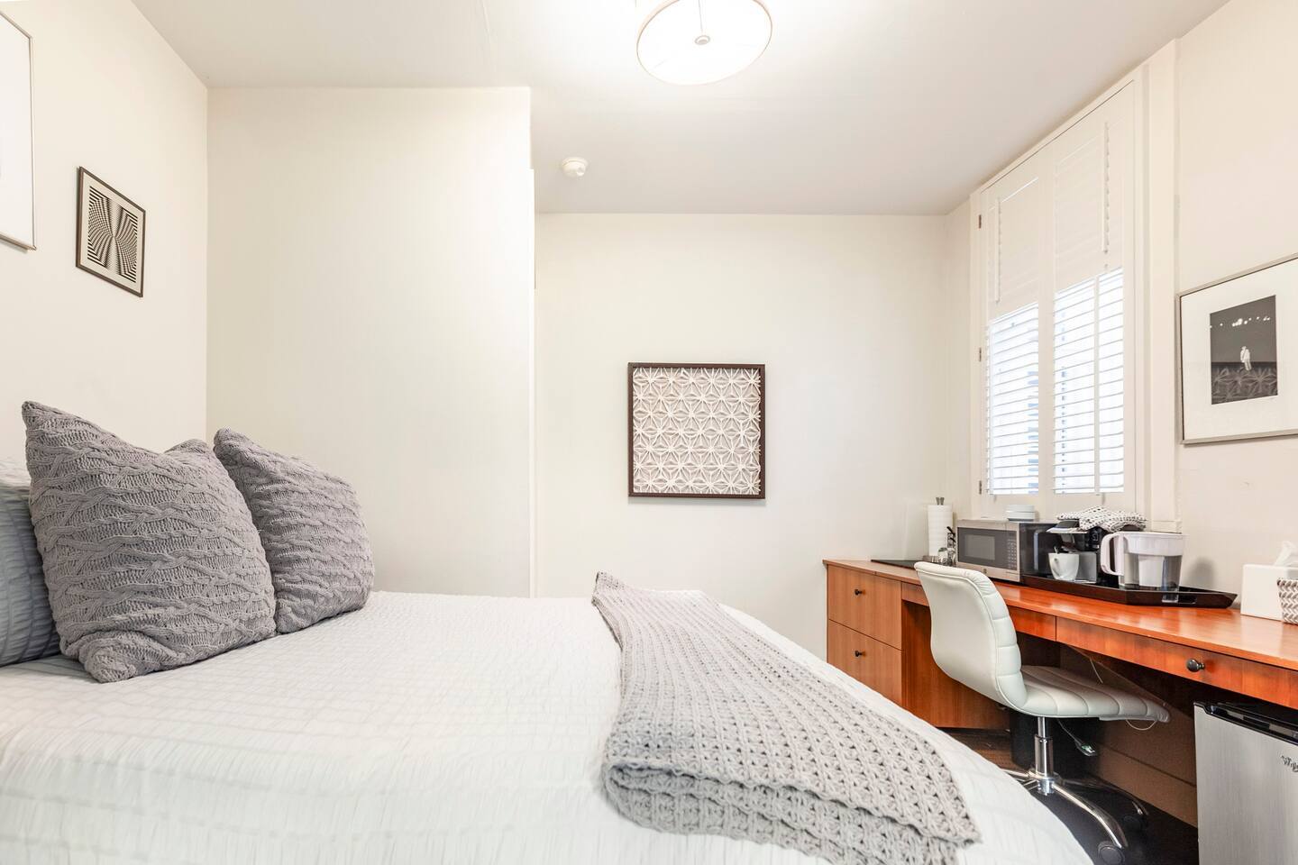 Chill out on a modern rocking chair gazing out onto a rare San Francisco backyard oasis. Look for butterflies, dragon flies, and humming birds while listening to the water fountain. Queen bed, full wall length work desk and Large private bathroom.