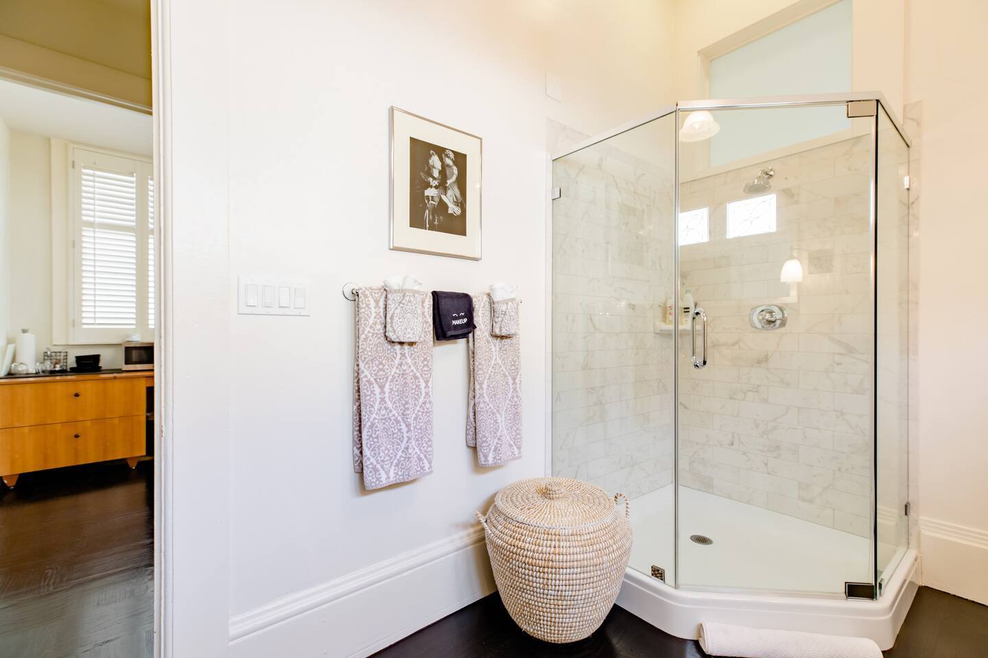 The suite is in a house in Pacific Heights, a low key neighborhood with designer shops, restaurants, and a vintage movie theater. The hustle and bustle of Fillmore Street is 7 blocks away. Plenty of metered and side street parking. Parking garage about 3 blocks.